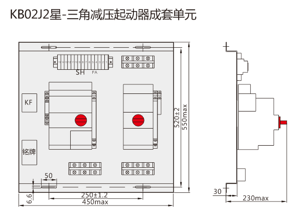 適用于電動機星-三角減壓起動的控制與保護,以KB02產品作為主開關,與時間繼電器、電氣聯鎖及控制回路組合構成星-三角減壓起動的控制與保護裝置。