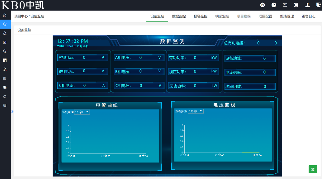 中凱能耗監控系統基于中凱云平臺,現場能耗監測設備進行能耗數據采集,通過智能網關組網,將數據上傳至中凱云平臺。web端及移動端app通過訪問云服務器同步數據,監控系統實現數據監測、分析、評估等功能。
